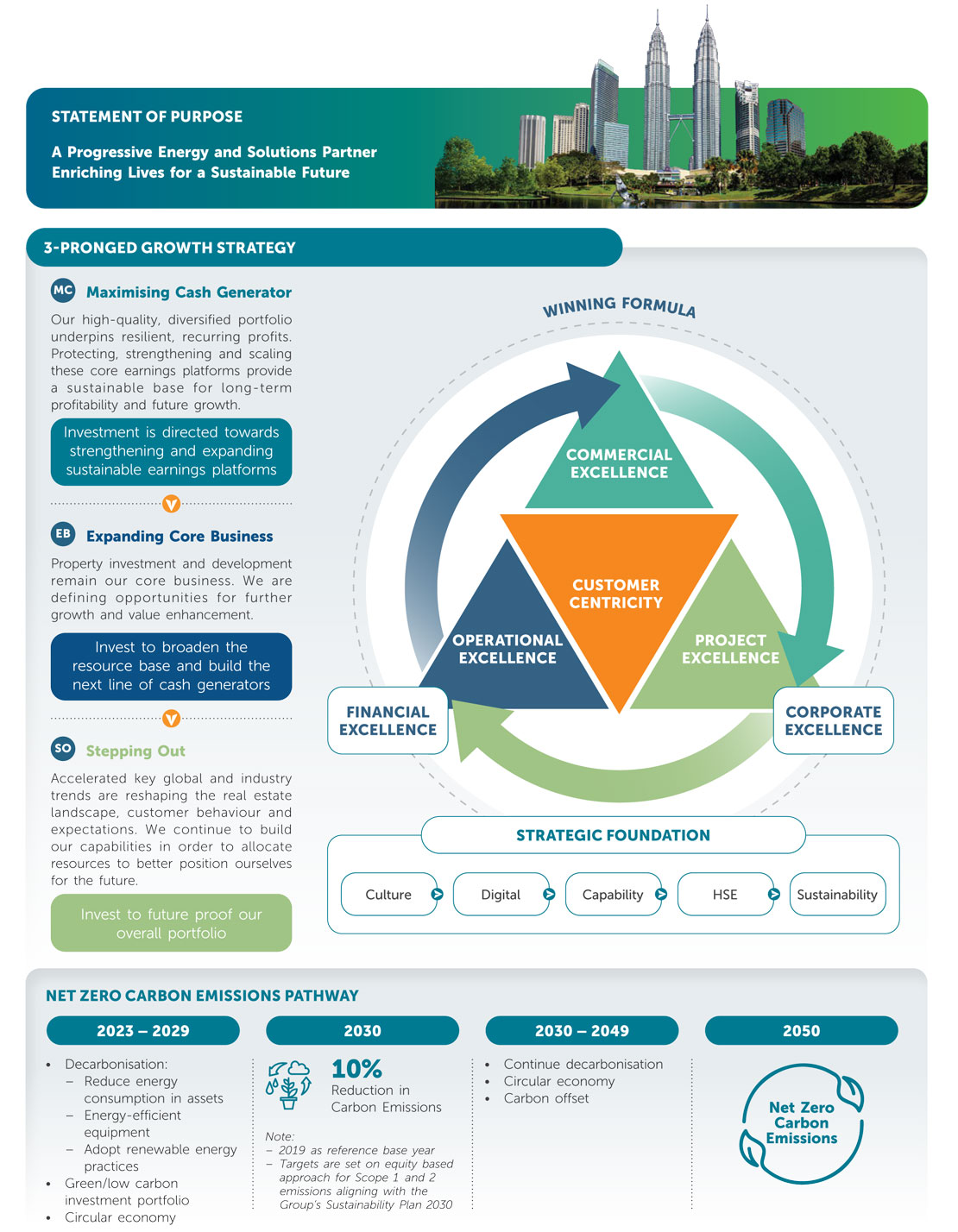 Driven by our aspiration, we have transformed from a property company to Malaysia's largest Real Estate Investment Trust and the country's only Stapled Security. Comprising KLCC Property Holdings Berhad and KLCC REIT, KLCCP Stapled Group represents a diversified office-focused REIT comprising five Grade-A offices which include the nation's iconic landmark, the PETRONAS Twin Towers, a premier retail mall and a luxury hotel. Strategically located in the heart of Kuala Lumpur City Centre, the 100-acre KLCC Development embodies Malaysia's strength and growth and is the nucleus of the city.